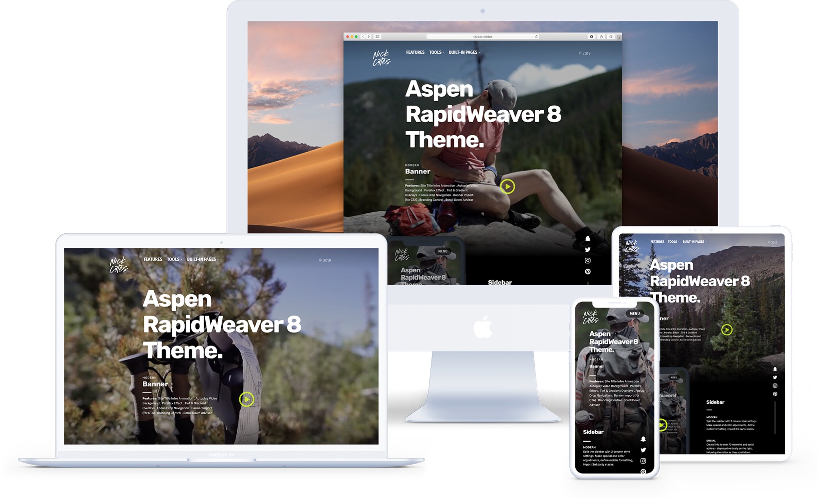 Aspen theme for RapidWeaver can deliver amazing websites alone, and go even deeper into creative realms with the Stacks plugin. Aspen utilises the latest RapidWeaver Styles for phenomenal creative freedom, within an easy-to-use theme. Combine abundant theme features, style settings, and endless Stack layout possibilities, for a first class website experience - just waiting to be built.